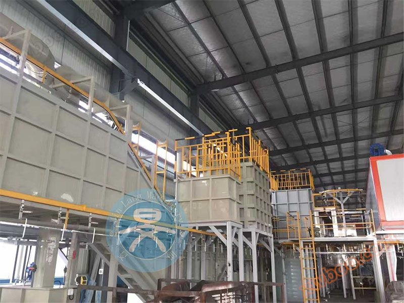 喷淋式多工位前处理机组是表面处理常用的设备,其原理是利用机械冲刷加速化学反应来完成除油、磷化、水洗等工艺过程。钢件喷淋式前处理的典型工艺是:预脱脂、脱脂、水洗、水洗、表调、磷化、水洗、水洗、纯水洗。前处理还可采用抛丸清理机,适用于结构简单、锈蚀严重、无油或少油的钢件。且无水质污染。